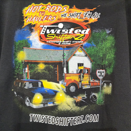 Twisted Shifterz Hoodies Vintage Gas Station Scene with the W900 and 57 Ford Wagoon