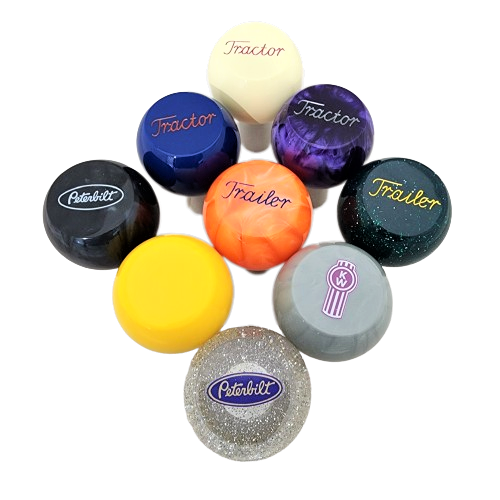 Character Emblem Engraved Shift Knobs. 2-1/8" FlatTop knobs. Choose SuperMan, Autobot, Decepticon, Deer Skull, Peace Sign, Star, Smiley and more. Click on the Custom Order Icon to build your own in any color shift knob. Made of material similar to bowling balls, color throughout. Brass threads, flush with bottom of knob, includes jam nut. Other recessed thread options available, see details. Contact us for special orders with your logo.